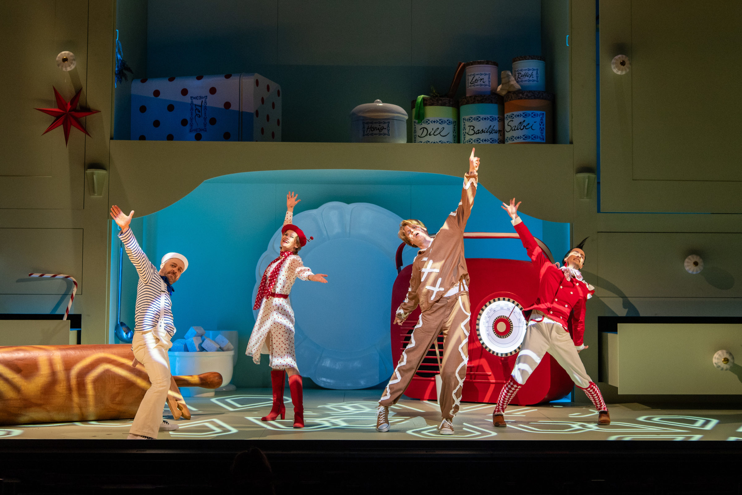 Um Mitternacht herrscht höchste Aufregung: Herr von Kuckuck, der stets pünktlich und laut in seiner Kuckucksuhr die Zeit ausruft, ist heiser! Verzweifelt bittet er Salz und Pfeffer, die die Ablage des Küchenschranks bewohnen, um Hilfe. Denn es besteht die Gefahr, dass „die Großen“ seinem Dasein im Müll ein Ende bereiten. Unerwartet stoßen die drei auf einen frisch gebackenen Lebkuchenmann. Der wird lebendig, entdeckt neugierig die Welt und will für Kuckuck heilsamen Honig besorgen. Doch dafür muss er eine abenteuerliche Reise in die obere Etage unternehmen. Nicht nur, dass er dort einem gefährlichen Teebeutel begegnet und einer ausgehungerten Maus in die Pfoten läuft – es kommt noch schlimmer … Mit Mut, Geschick, Fantasie und der gemeinsamen Kraft alter und neuer Freundinnen und Freunde gelingt schließlich die Rettung – für alle. Uraufgeführt 1976 in England unter dem Titel „The Gingerbread Man“ erzählt das witzige Stück von der Zauberkraft echter Freundschaft.