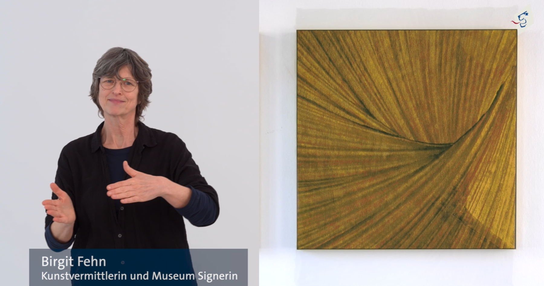 Museum Signerin Birgit Fehn führt in DGS durch die Ausstellung.